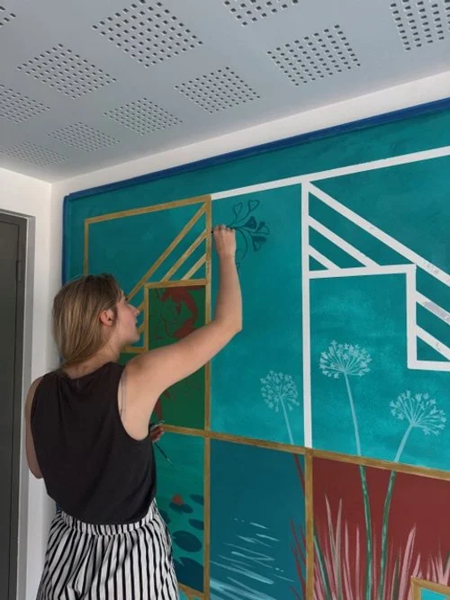 Nous a également accompagnés pour une fresque murale tournée Nature et Art Déco, la designer nancéienne Amandine Trendel qui combine ici ses deux passions – l’art et le design – pour créer un peinture inspirante et captivante.